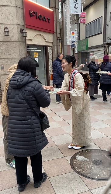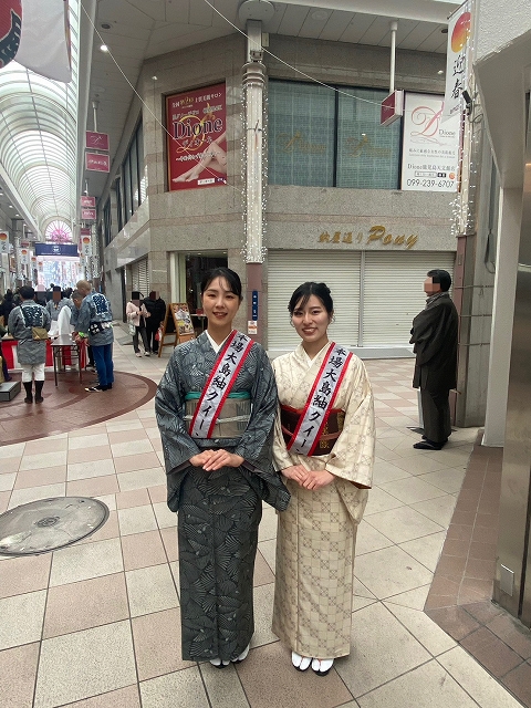 私は、1月2日に天文館の納屋通りにて、2024本場大島紬クイーンの林(イム)アルムさんと一緒に新春のお酒を振る舞いました!